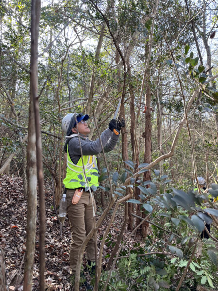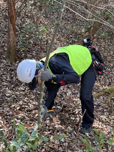 森の明るさを取り戻しつつ、山肌の乾燥にも配慮した間伐作業を行いました。